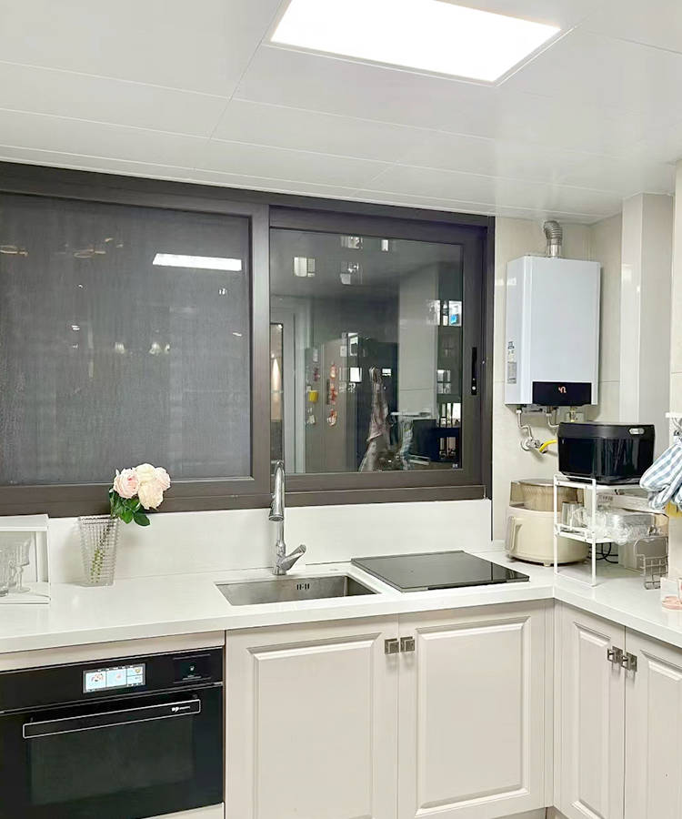 6、厨房柜体选用实木+烤漆柜门,好看又好打理。