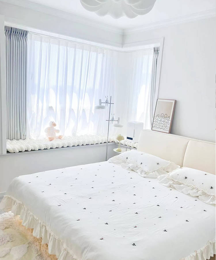 4、卧室的飘窗利用起来,铺上软垫,作为休闲区,真的很舒服!